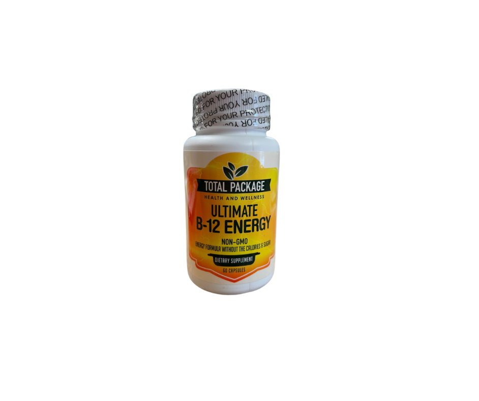 Total Package Ultimate B-12 vitamin is essential for metabolism, stress relief, energy production and red blood cells.* B-12 and folate play an essential role in the maintenance of normal homocysteine levels important for cardiovascular health.*